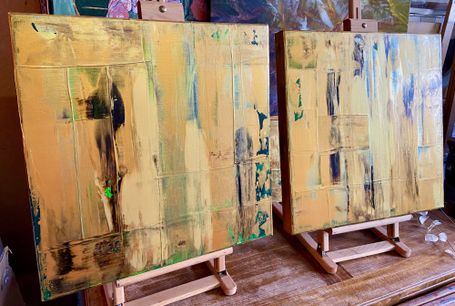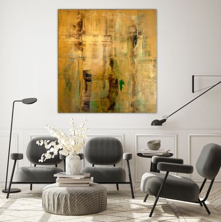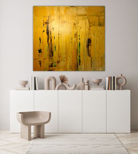 Abstrakte Herbstlandschaft in harmonierenden Goldmischtönen. Wunderschöner Farbverlauf mit feinsten Strukturen.
