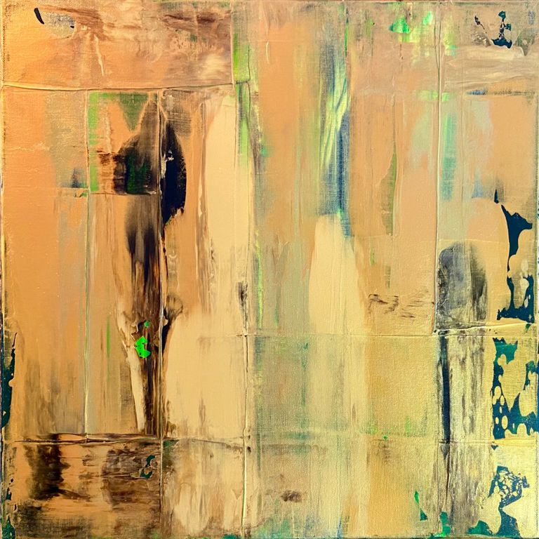 Abstrakte Waldlandschaft in harmonierenden Goldmischtönen, welche je nach Lichteinfall sehr veränderlich schimmern. Wunderschöner Farbverlauf mit feinsten Strukturen.