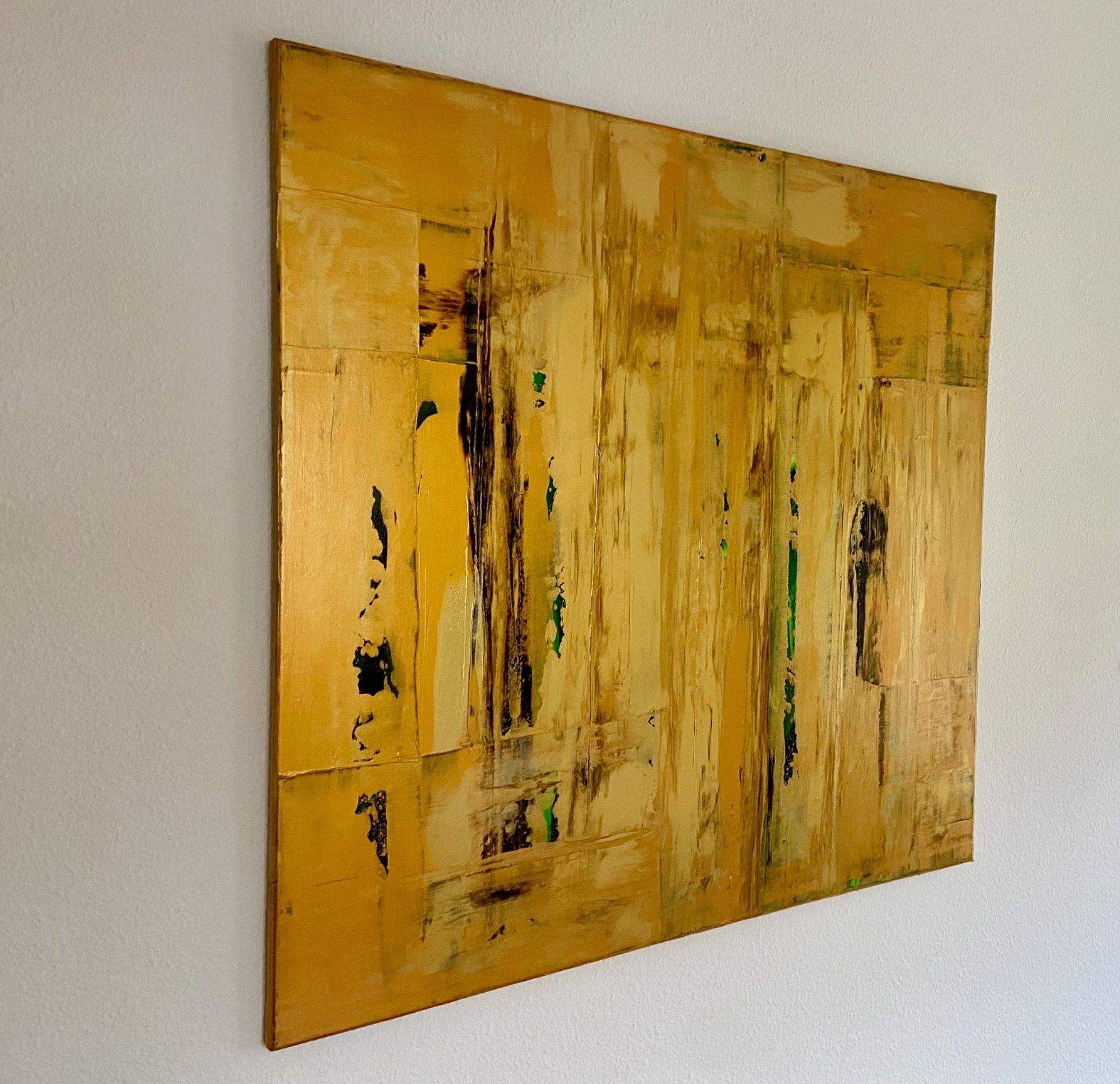abstrahierte Waldlandschaft in 5 harmonierenden Goldmischtönen. Wunderschöner Farbverlauf. Je nach Lichteinfall verändert sich die Intensität und Reflexion des Goldes.
